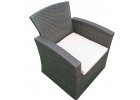 Ručně pletená židle z umělého ratanu s ocelovou konstrukcí. Židle je stohovatelná a bezúdržbová.